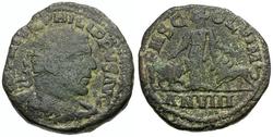 Reverse: Moesia standing facing, head left, bull to left, lion to right; AN VIII (date) in exergue