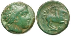 Reverse: BPETTIΩN, river god standing facing, holding scepter, crowning himself with wreath, Π monogram in right field