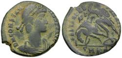 Reverse: FORTVNA AVGVST, Fortuna standing left, holding rudder and cornucopia; S-C across fields