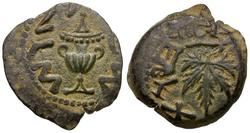 Reverse: Vine leaf on tendril, paleo-Hebrew inscription: 'Freedom of Zion' around