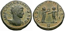Obverse: IMP C AVRELIANVS AVG, radiate, cuirassed bust right