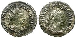 Reverse: CONCOR-DIA AVG, Severina as Concordia clasping hands with Aurelian, radiate bust of Sol right between