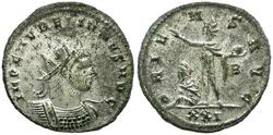 Obverse: IMP C AVRELIANVS AVG, radiate, cuirassed bust right, B below