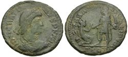 Gratian (AD 367-383) Æ2 / Emperor raising Woman