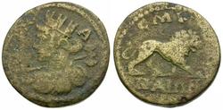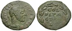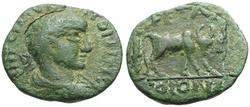 Volusian (AD 251-253). Samaria. Caesarea Maritima Æ23 / Dionysos Reclining on Lion