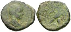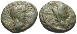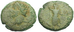 Elagabalus (AD 218-222). Samaria. Caesarea Maritima Æ22 / Bust of Serapis