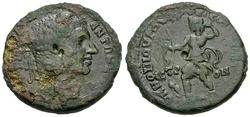 Severus Alexander (AD 222-235). Phoenicia. Akko-Ptolemais Æ23 / Emperor on Horseback