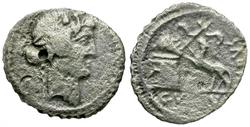 90 BC - Roman Republic. C. Vibius C.f. Pansa Æ Fourrée Core / Minerva in Quadriga