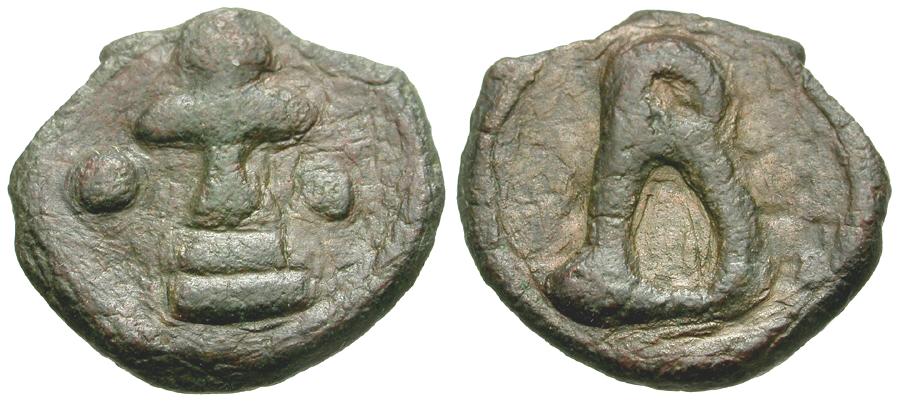 » Lot Info: *Sear 1719* Byzantine Empire. Basil I (AD 867-886) Æ Cast Unit / Cross Potent