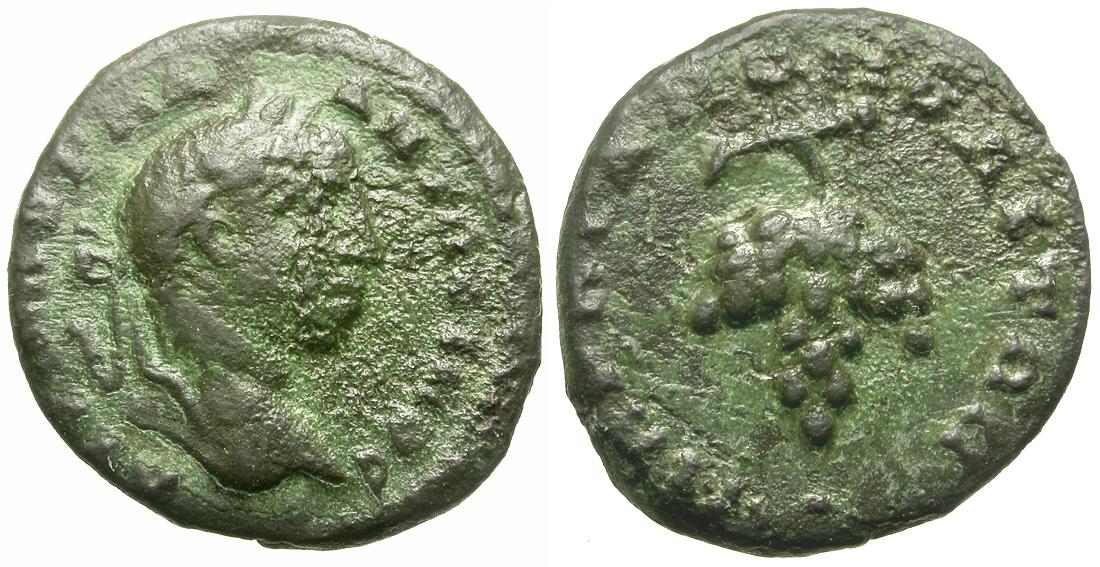 » Lot Info: Elagabalus (AD 218-222). Moesia Inferior. Marcianopolis Æ16 / Grapes