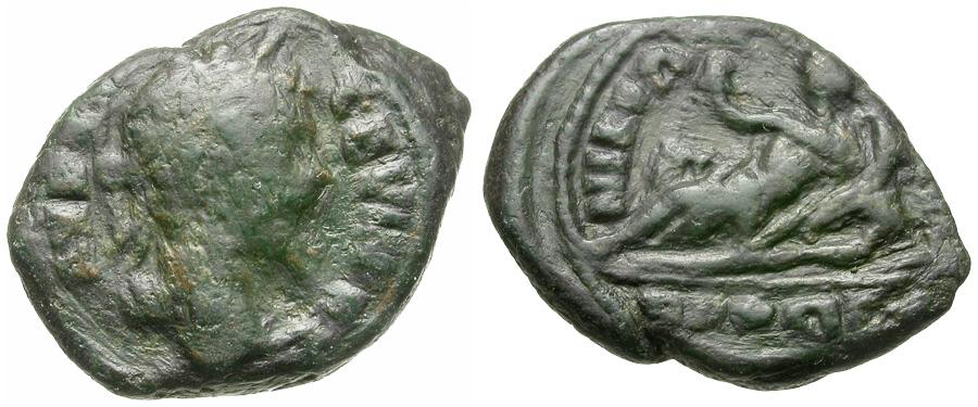 | Septimius Severus (AD 193-211). Moesia Inferior. Nicopolis ad Istrum Æ16 / River god |