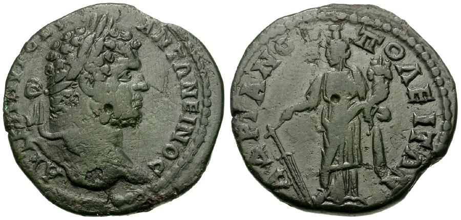 Reverse: AΔPIANOΠOΛEITΩN, Tyche standing facing, head left, holding rudder and cornucopia