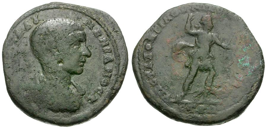 | Diadumenian, Caesar (AD 217-218). Moesia Inferior. Nicopolis ad Istrum. Statius Longinus, legatus consularis Æ27 / Artemis |