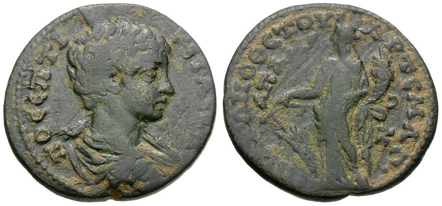 Obverse: ΠΟ CΕΠΤΙ - ΓЄΤΑC ΚΑΙ, bare-headed, draped and cuirassed bust right, seen from behind