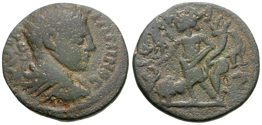 | Elagabalus (AD 218-222). Seleucis and Pieria. Raphanea Æ23 / Genius |