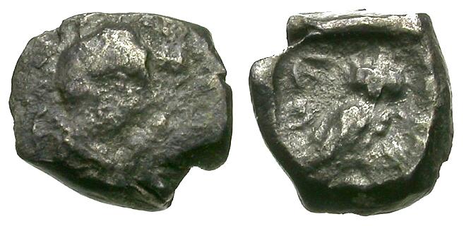 Reverse: Owl standing right, head facing; olive sprig and crescent behind