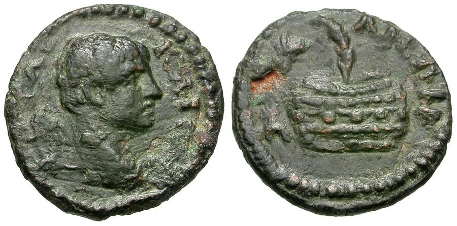 | Geta, as Caesar (AD 198-209). Bithynia Nicaea Æ14 / Prize Urn |