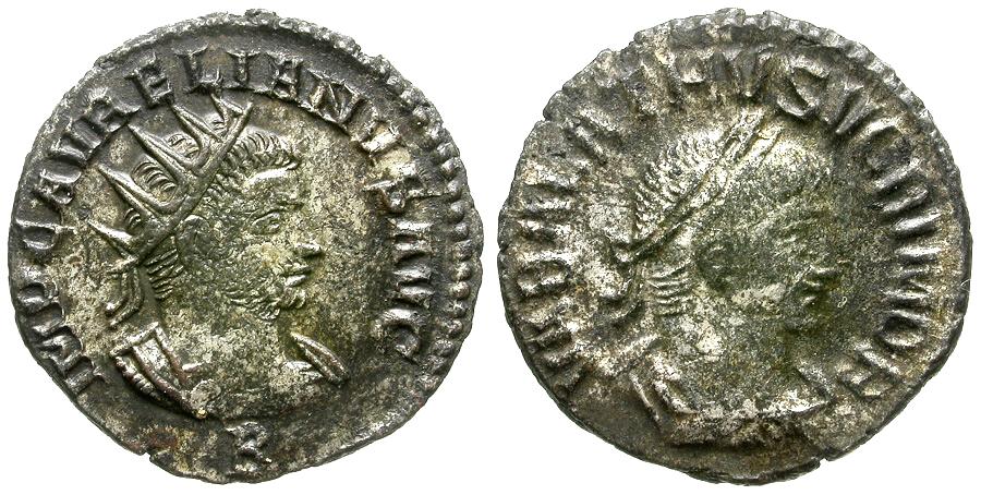 | Aurelian (AD 270-275) with Vabalathus Silvered Æ Antoninianus |