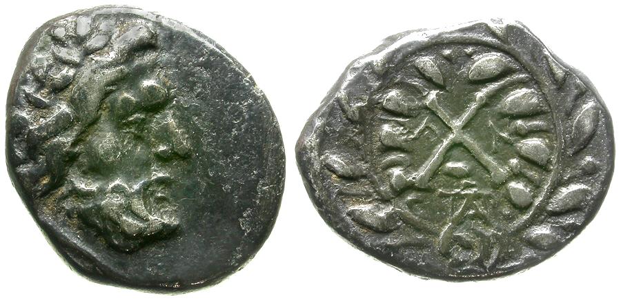 Reverse: Achaean League AX monogram, A-N across fields, ΠAP monogram below, all within laurel wreath