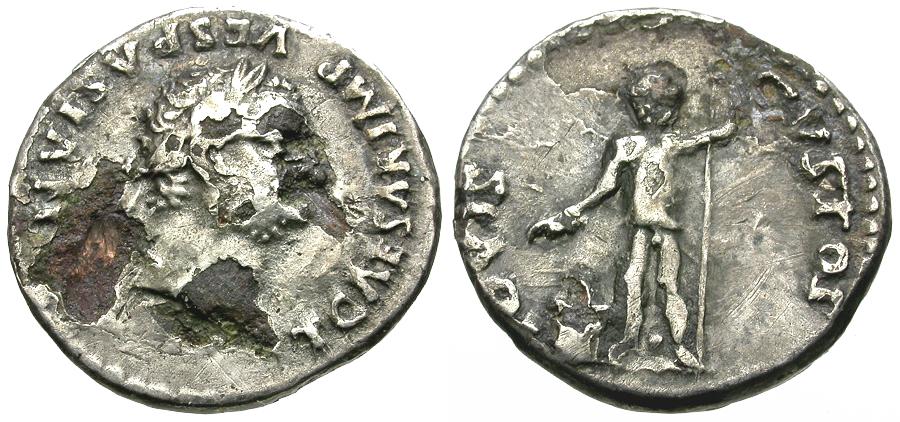 Obverse: T CAESAR IMP VESPASIANVS, laureate head right