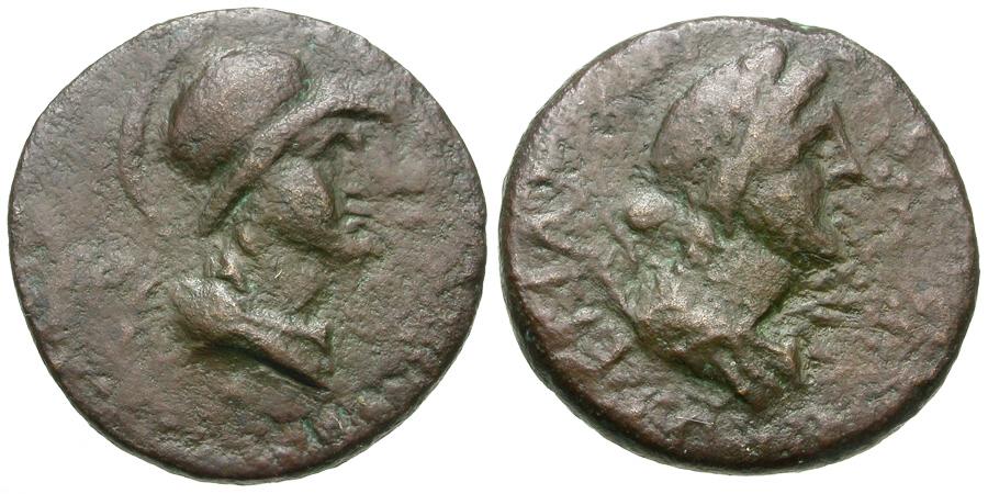 Reverse: ΠOΛEMΩNOΣ, laureate and draped bust of Artemis right, bow quiver over shoulder