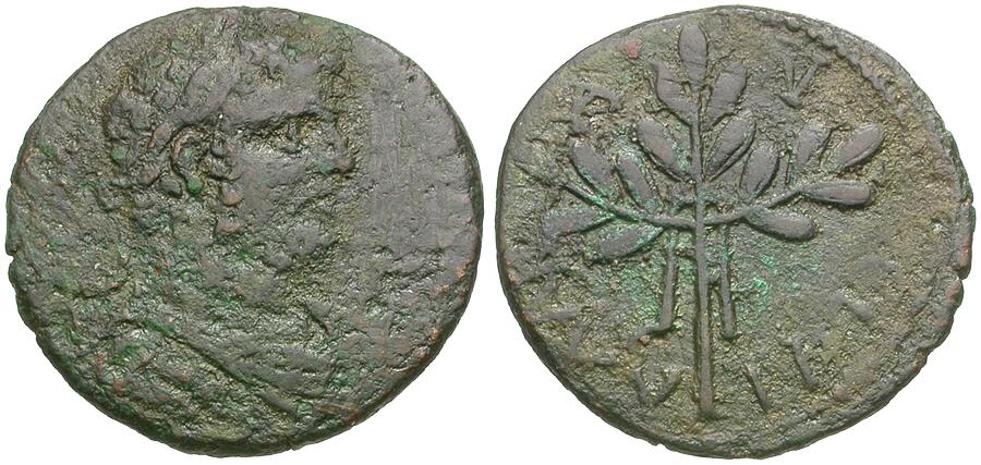 | Caracalla (AD 198-217). Caria. Alabanda Æ26 / Laurel Branch |