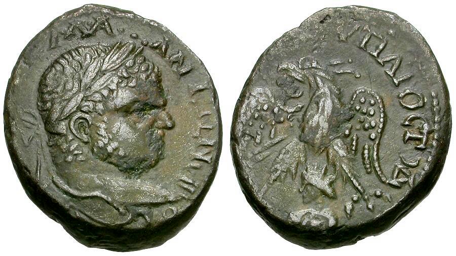 | Caracalla (AD 198-217) Seleucis and Pieria. Emesa AR Tetradrachm / Shamash |