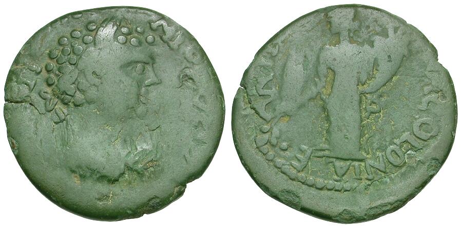 Reverse: ANTIOCH FORTVNA COLONIAE, Tyche-Fortuna standing left, holding branch and cornucopia
