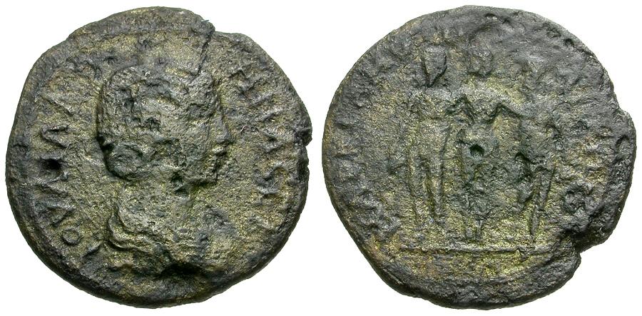 | Julia Domna (AD 193-217). Moesia Inferior. Marcianopolis Æ24 / Three Graces |