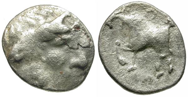 | Celts of the Middle Danube. The Amantini. Imitation of Philip II of Macedon. Kugelwange type AR Drachm |
