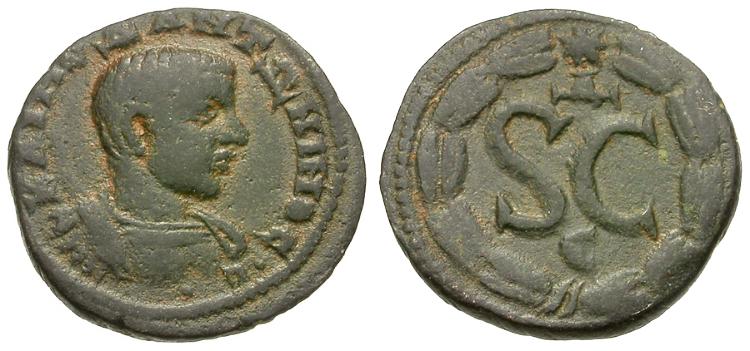 Obverse: KAI M O Δ ANTΩNINOC • C •, bare-headed, cuirassed bust right