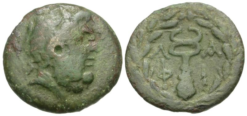 Reverse: Λ-A / Φ-I, club surmounted by caduceus within wreath
