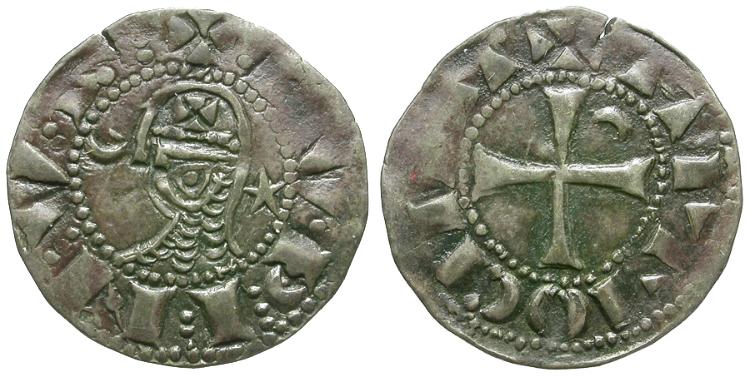 Obverse: ✠RVPINVS, armored bust left; crescent and star in fields