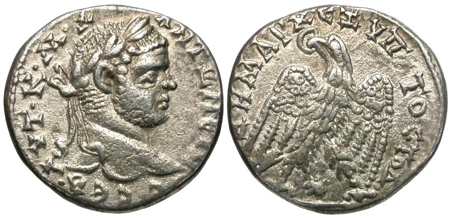 | Caracalla (AD 198-217). Seleucis and Pieria. Laodicea ad Mare AR Tetradrachm / Eagle |