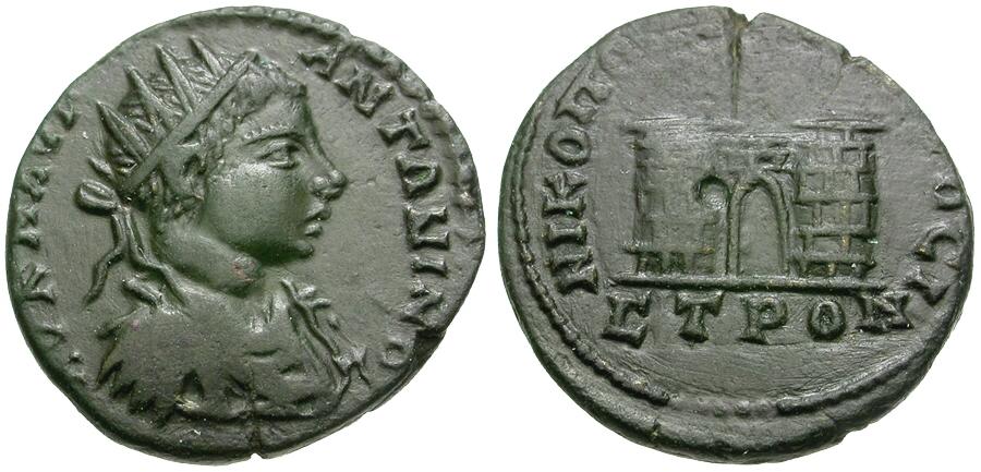 Reverse: NIKOΠOΛITΩN ΠΡOC I / CTΡON, city gate with pointed arch and two flat towers