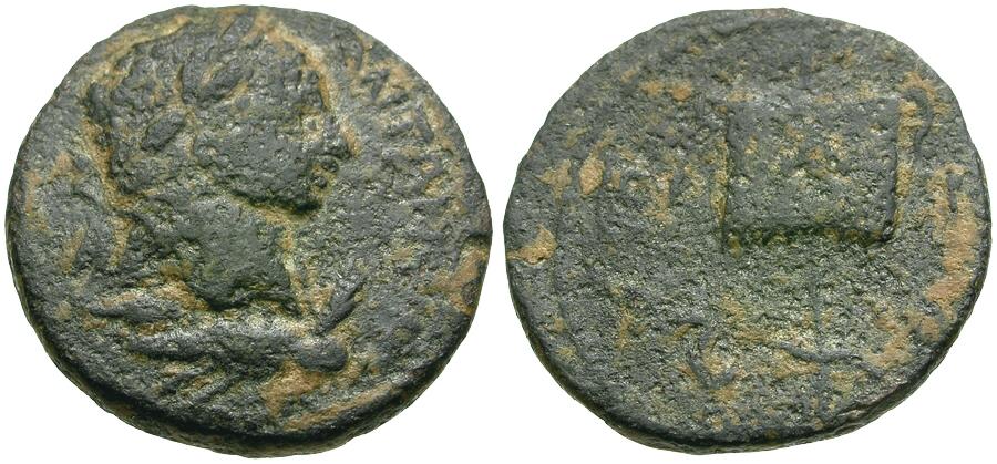 | Caracalla (AD 198-217). Mesopotamia. Rhesaena Æ18 / Vexillum |
