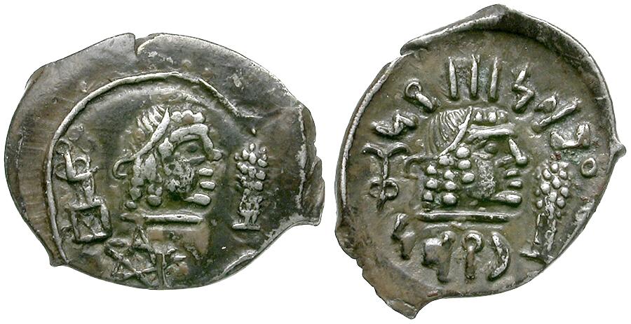 Reverse: Head right, club before, monogram symbols behind, Himyarite legend
