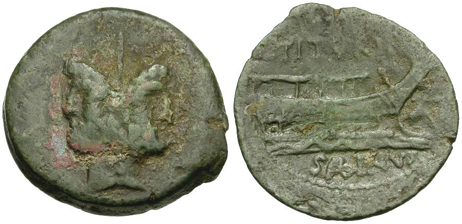| 89 BC - Roman Republic. L. Tituri L.f. Sabinus Æ As |