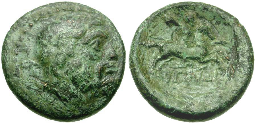 Reverse: IΣIN, horseman charging right with horizontal spear, chlamys flying behind