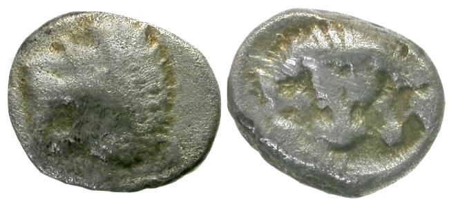 | Caria. Uncertain mint AR Hemiobol / Lion |