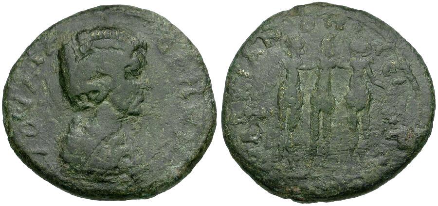 | Julia Domna (AD 193-217). Moesia Inferior. Marcianopolis Æ25 / Three Graces |