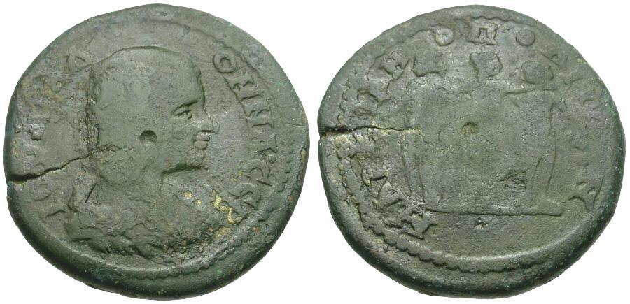 » Lot Info: Julia Domna (AD 193-217). Moesia Inferior. Marcianopolis Æ24 / Three Graces