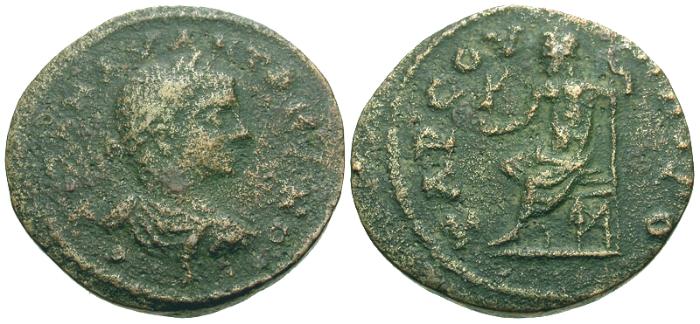 | Elagabalus (AD 218-222). Cilicia. Tarsos Æ19 / Zeus |