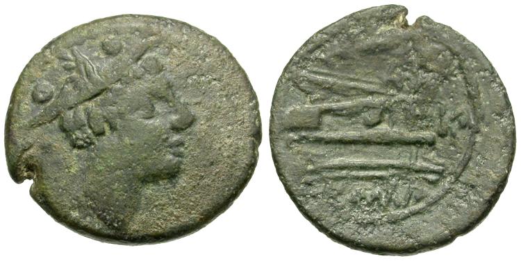 Reverse: Prow right, grain ear above, KA before, ROMA below