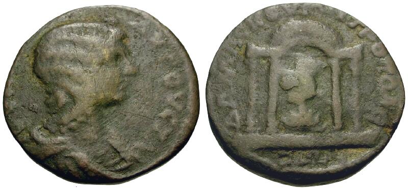 | Julia Domna (AD 193-217). Coele-Syria. Damascus Æ23 / Lindgren Plate Coin |