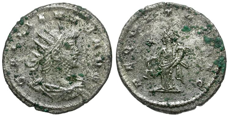 Obverse: GALLEINUS AVG, radiate, draped and cuirassed bust right