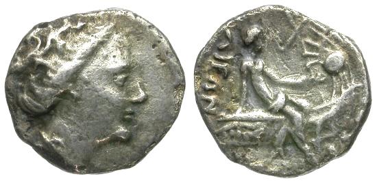Reverse: [IΣTI]AI - EΩN, nymph Histiaea seated right on stern of galley