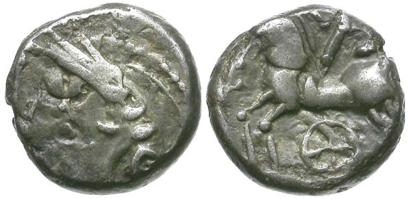 Obverse: Stylized helmeted head left