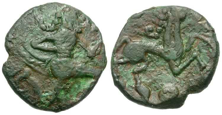| Ancient France. Celtic Gaul. Bellovaci Tribe Æ15 / Running Cubist |