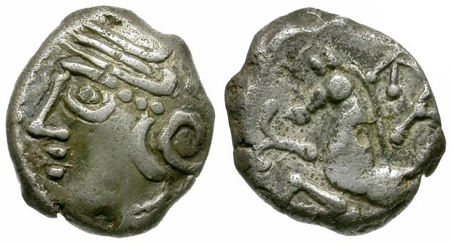 Ancient France. Celtic Gaul. Aedui or Lingones Tribe Kaletedou type AR Quinarius
